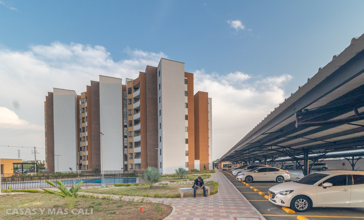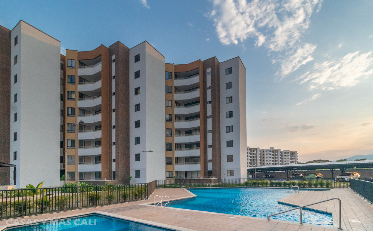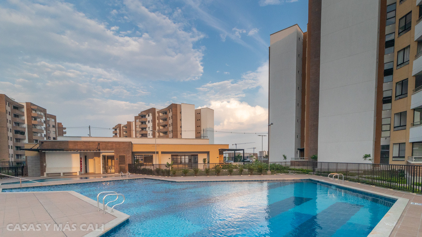 A la venta o alquiler espectacular apto de 107 m2 para estrenar en el sector de Parque Vivero, sur de Cali. El apto se encuentra en un conjunto nuevo, en un sector de alta valorización, cerca a centros comerciales, colegios, universidades, parques. El apto cuenta con sala-comedor, amplio balcón, cocina integral con barra, zona de ropas, sala de estar o sala de TV, baño social, 3 habitaciones, la principal con baño privado y vestier, 2 habitaciones con baño privado y closet. El apto dispone de piso en porcelanato de gran formato, parqueadero lineal para 2 vehículos y depósito. El Conjunto Residencial consta de piscina de adultos y niños, zona de juegos infantiles, zona BBQ, baño turco, gimnasio y salón social. El apto tiene leasing con Banco Davivienda por $183 millones. Que esperas para agendar tu cita?