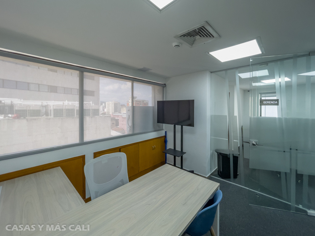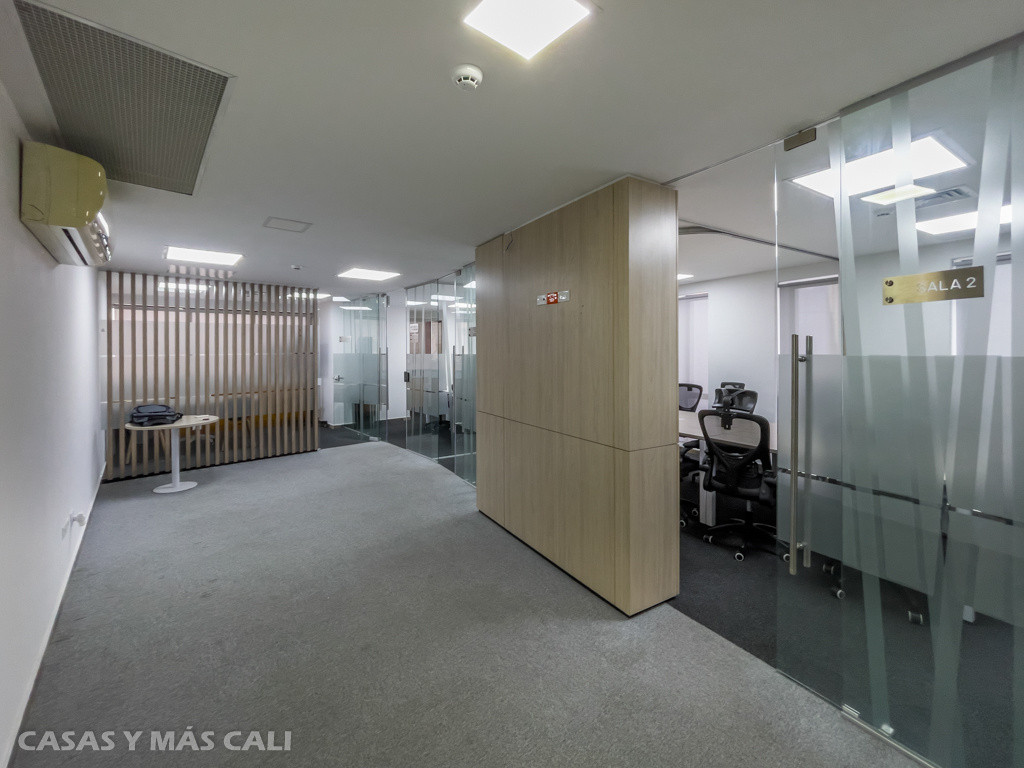 Se vende Oficina en el barrio San Pedro, centro de Cali, a pocas cuadras de la Plaza de Caicedo y Plazoleta San Francisco, cuenta con 72 m2 construidos y se encuentra totalmente amoblada. La oficina consta de: recepción, 2 superficies de trabajo inteligentes, oficina de gerencia, cocineta, 2 baños, aire acondicionado central, divisiones en vidrio templado, cableado estructural y biblioteca de archivo. La oficina tiene 2 parqueaderos independientes y contiguos en sótano. El inmueble se encuentra libre de deuda, papeles al día. Agenda tu cita